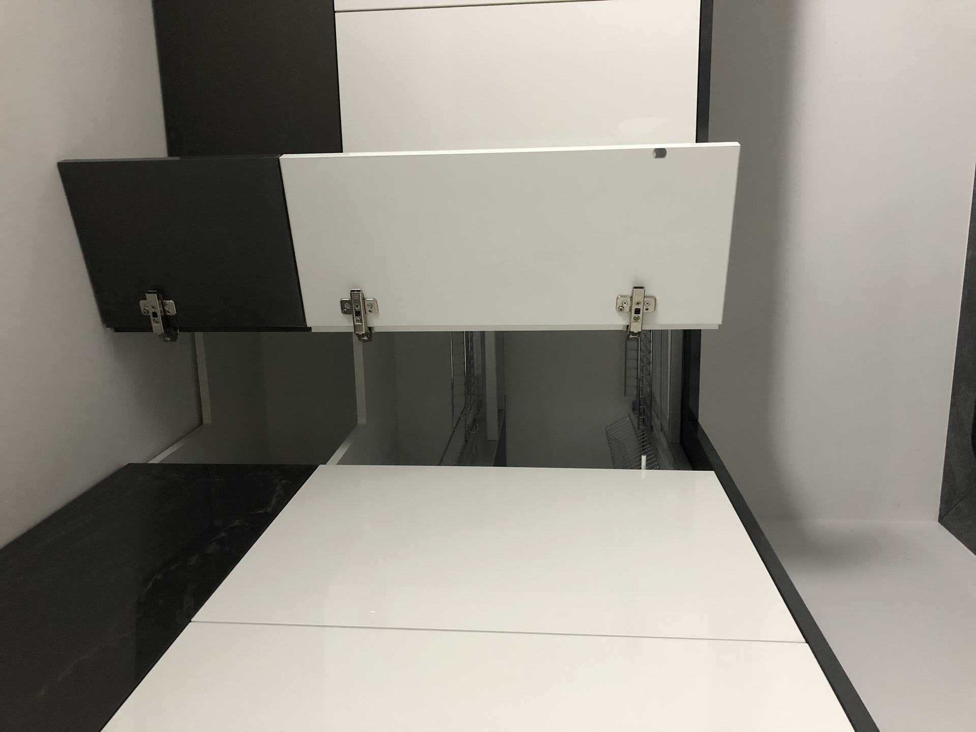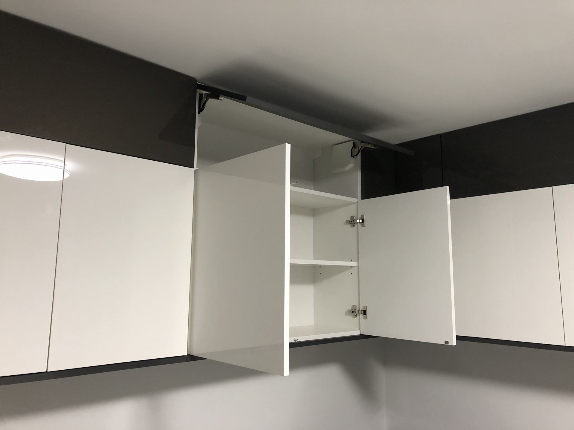 Dla dopełnienia efektu dodaliśmy podszafkowe oświetlenie LED umieszczone w wyfrezowanym profilu.